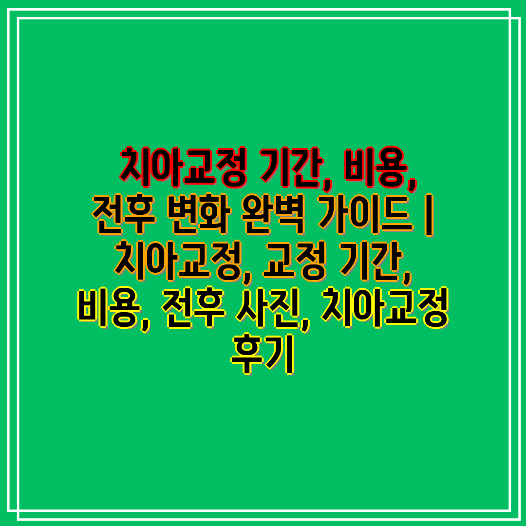 치아교정 기간, 비용, 전후 변화 완벽 가이드 | 치아교정, 교정 기간, 비용, 전후 사진, 치아교정 후기 가지런한 치아는 아름다운 미소를 선물하고 자신감을 높여줍니다. 하지만 삐뚤빼뚤한 치아 때문에 고민이시라면 치아교정을 통해 바르고 건강한 치아를 되찾을 수 있습니다. 하지만 어떤 종류의 교정을 해야 할지, 얼마나 오래 걸릴지, 비용은 얼마나 들지 막막하실 텐데요. 이 글에서는 치아교정에 대한 모든 궁금증을 해결해 드립니다. 치아교정 기간, 비용, 전후 변화는 물론 다양한 교정 장치와 후기까지 체계적으로 정리하여 치아교정에 대한 모든 것을 알려드리겠습니다. 지금 바로 치아교정 여정을 시작해 보세요. ✅ 앞니 임플란트, 망설이지 마세요! 비용부터 주의사항까지 한번에 확인하고 자신에게..