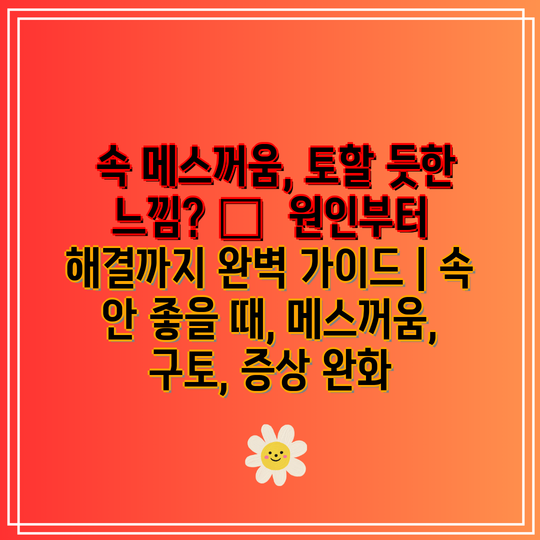 속 메스꺼움, 토할 듯한 느낌? 🤢 원인부터 해결까지 완벽 가이드 | 속 안 좋을 때, 메스꺼움, 구토, 증상 완화갑자기 속이 불편하고 메스꺼워 울렁거리는 경험, 누구나 한 번쯤은 해봤을 겁니다. 토할 것 같은 느낌에 휩싸이면 일상생활에도 지장을 주고, 걱정과 불안감까지 더해지죠. 😨하지만 속 메스꺼움은 다양한 원인에 의해 발생할 수 있습니다. 음식 때문일 수도 있고, 스트레스나 질병과 관련될 수도 있습니다.이 글에서는 속 메스꺼움의 원인부터 증상 완화 방법, 그리고 구토와 관련된 정보까지, 속 메스꺼움과 관련된 모든 것을 자세하게 알려드립니다. 🔍더 이상 속 메스꺼움 때문에 고생하지 마세요! 지금 바로 원인을 파악하고 해결책을 찾아보세요! 💪✅ 스트레스가 속 메스꺼움의 주범? 스트레스성 위염 ..