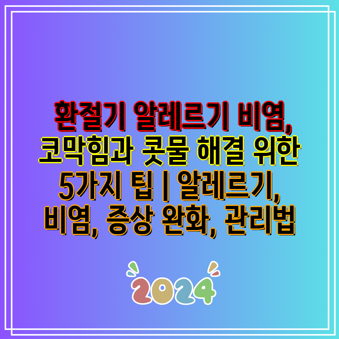 환절기 알레르기 비염, 코막힘과 콧물 해결 위한 5가지 팁 | 알레르기, 비염, 증상 완화, 관리법봄바람이 불고 꽃이 피는 즐거운 계절이지만, 알레르기 비염으로 고통받는 사람들에게는 괴로운 시기입니다. 재채기, 콧물, 코막힘 등의 증상은 일상생활을 불편하게 만들고, 컨디션 저하까지 유발합니다.하지만 걱정하지 마세요! 오늘은 환절기 알레르기 비염 증상 완화를 위한 5가지 팁을 소개해 드립니다. 단순한 생활 습관 변화만으로도 증상을 효과적으로 관리할 수 있습니다.1, 집안 환경 관리: 알레르기 유발 물질을 제거하는 것이 중요합니다. 먼지 쌓이기 쉬운 곳을 자주 청소하고, 침구류는 햇볕에 말려 집먼지 진드기를 제거해주세요.2, 외출 후 손 씻기: 외출 후에는 손을 깨끗이 씻어 알레르기 유발 물질이 코로 들어..